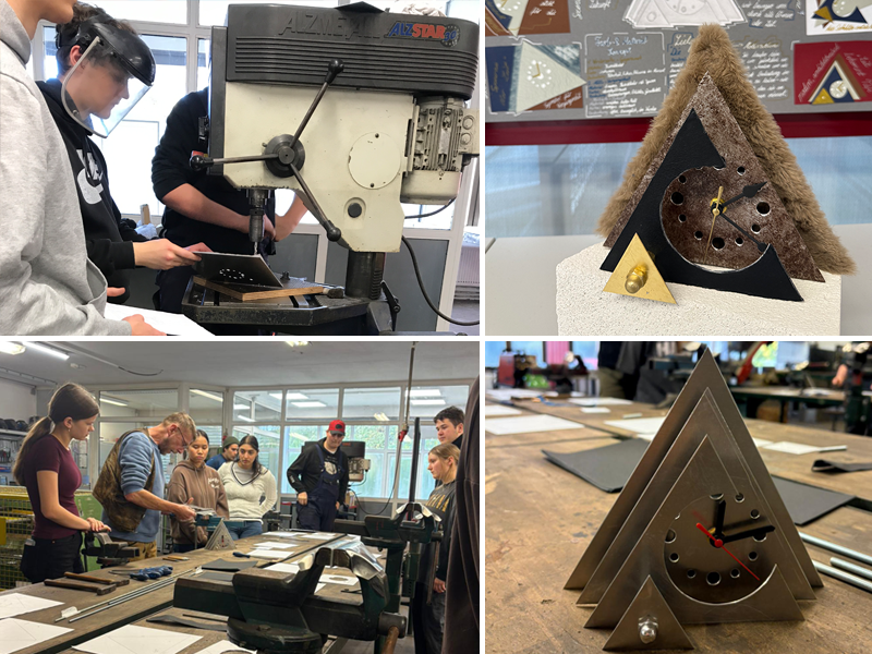 In den vergangenen Wochen arbeiteten die Schülerinnen und Schüler unserer 11. Klasse der Fachrichtung Gestaltung an einem besonderen Praxisprojekt, das handwerkliche Präzision, kreatives Denken und individuelles Gestalten miteinander verband. Ziel war die Entwicklung und Herstellung einer eigenen Tischuhr aus Metall, bei der jede Uhr ein echtes Unikat darstellt.